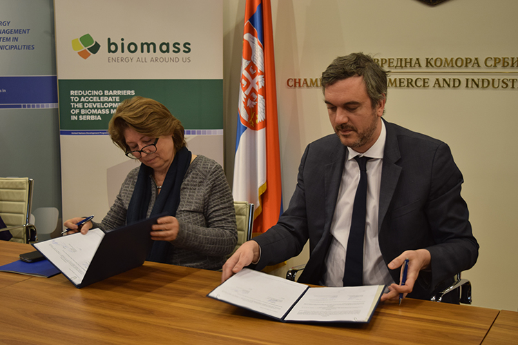 The Resident Coordinator of the United Nations Development Programme (UNDP) in Serbia, Ms Irena Vojackova Sollorano, and the President of the Serbian Chamber of Commerce (PKS), Mr. Marko Čadež, in the premises of the Serbian Chamber of Commerce on 27 April 2016 signed the Memorandum of Understanding related to cooperation between the two organizations in different fields of common interest. The need for formalizing this cooperation has become evident since in view of the shared missions and objectives between the two organizations, in order to improve the efficiency and coordination of their development activities.