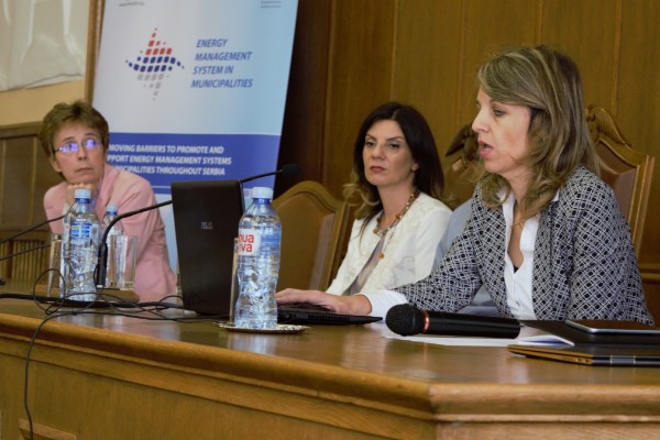 Following the discussion, the participants were addressed by Antonela Solujić, head of the Department for energy efficiency with the Ministry of Mining and Energy who delivered a presentation of the current state of development of the energy management system in Serbia, with a separate overview of specificities of introduction of the system in local self-government units. She also imparted the information on further development of EMIS, which should, with development of analytical modules, also make it possible for participants to create partial reports and annual reports in future, which would considerably alleviate the work of energy managers. The development of the system will also imply development of the data base of energy efficiency indicators. She also emphasized that the Faculty of Mechanical Engineering in Belgrade is the authorized training organization, but also that it was UNDP which provided significant support for training of energy managers, same as in the case of training for end-users of the EMIS.