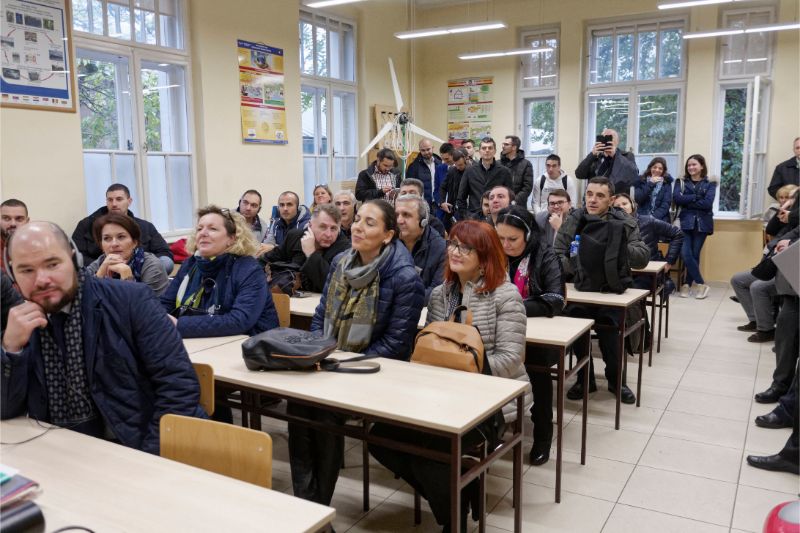 The study visit participants also visited the Secondary Electrotechnical School „Mihajlo Pupin“, where they were welcomes the school principal, Mr. Milan Vukobrat, and professor Mr. Jovo Pavlović, who demonstrated the operation of the „Energy Monitor“, exhibiting in real time the energy and fuels consumption data for the school (water, electricity, heat). Professor Mr. Saša Skoko demonstrated the laboratory classroom with different equipment and systems related to renewable energy sources and energy efficiency and their utilisation (solar collectors, photovoltaic panels, solar trackers, mini wind generator, biomass boiler, thermovision camera, led lighting, etc.).