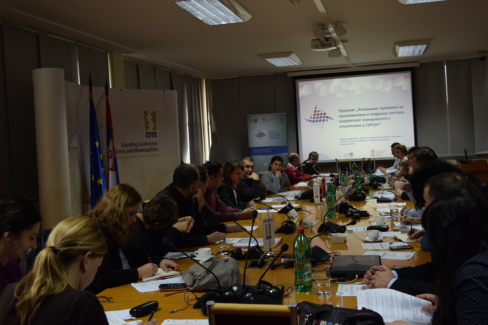 U utorak, 8. novembra 2016. godine u prostorijama Stalne konferencije gradova i opština Srbije održana je četvrta u nizu prezentacija Javnog poziva za dodelu bespovratnih sredstava za finansiranje projekata u oblasti efikasnog korišćenja energije u jedinicama lokalne samouprave. U sali punoj zainteresovanih predstavnika lokalnih samouprava iz opština i okruga koji gravitiraju Beogradu kao i njihovih javno komunalnih preduzeća predstavnici Programa Ujedinjenih nacija za razvoj (UNDP) i Ministarstva rudarstva energetike Republike Srbije predstavili su Projekat u okviru koga se realizuje javni poziv, a zatim i sam poziv.