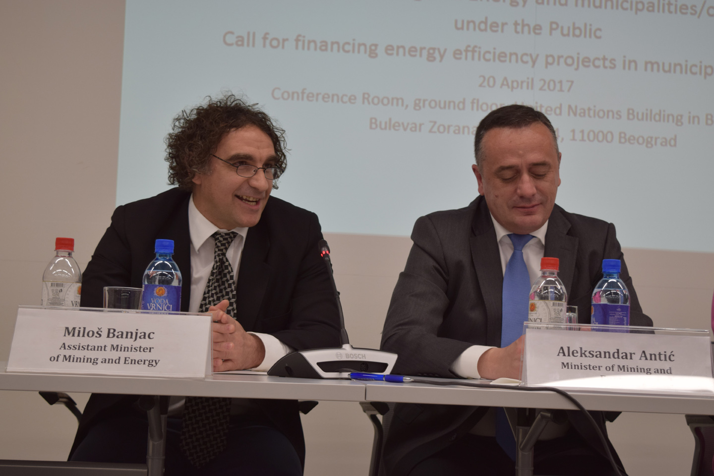 U četvrtak, 20. aprila 2017. godine u prostorijama Programa Ujedinjenih nacija za razvoj, Ministar rudarstva i energetike Aleksandar Antić potpisao je s predstavnicima lokalnih samouprava ugovore o dodeli bespovratnih sredstava za kofinansiranje projekata unapređenja energetske efikasnosti u javnim zgradama u njihovoj nadležnosti.