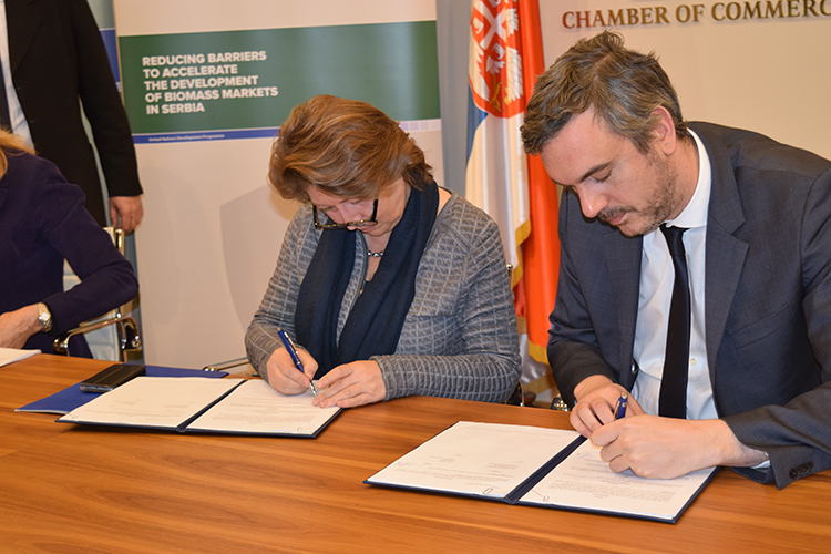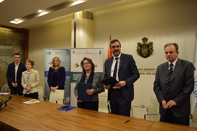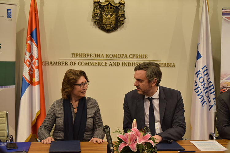 The Resident Coordinator of the United Nations Development Programme (UNDP) in Serbia, Ms Irena Vojackova Sollorano, and the President of the Serbian Chamber of Commerce (PKS), Mr. Marko Čadež, in the premises of the Serbian Chamber of Commerce on 27 April 2016 signed the Memorandum of Understanding related to cooperation between the two organizations in different fields of common interest. The need for formalizing this cooperation has become evident since in view of the shared missions and objectives between the two organizations, in order to improve the efficiency and coordination of their development activities.