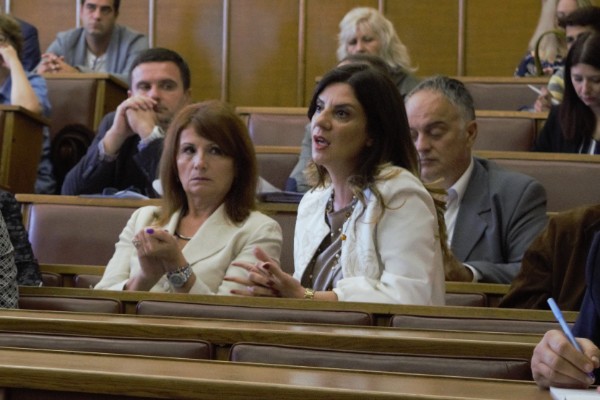In the last part of introductory presentations, the participants in the meeting of the Network were addressed by Maja Matejić, UNDP Portfolio manager for energy. She also emphasized the importance of cooperation between the Ministry and SCTM, as well as the role of the Network in connecting of relevant actors in the area of the energy management system. In these terms, she emphasized the willingness of UNDP to support activities of the network in the course of the project “Removing Barriers to Promote and Support Energy Management Systems in Municipalities throughout Serbia”. Maja Matejić added that through the given project UNDP works intensively in 29 municipalities and two cities, Kragujevac and Pančevo, on introduction of the energy management information system. She added that the mentioned tools for automatic entering of data on energy and water consumption are being developed, and that they are in the stage of testing in Pančevo and Kragujevac.