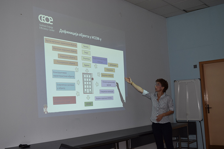 Polaznici obuke obučeni su da formiraju objekte i njihove korisnike, snabdevače i njihove energente, merna mesta, fakture za energiju i vodu i korisnike sistema na nivou objekata. Takođe, polaznici su obučeni da vrše unos različitih sporo i brzopromenljivih podataka u sistem.