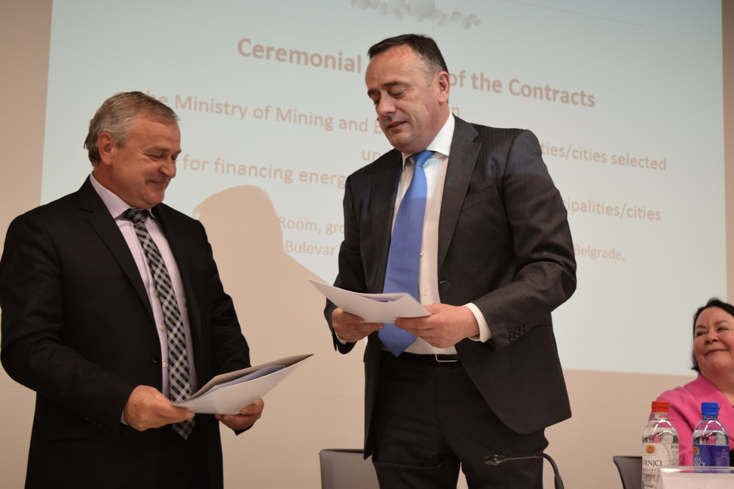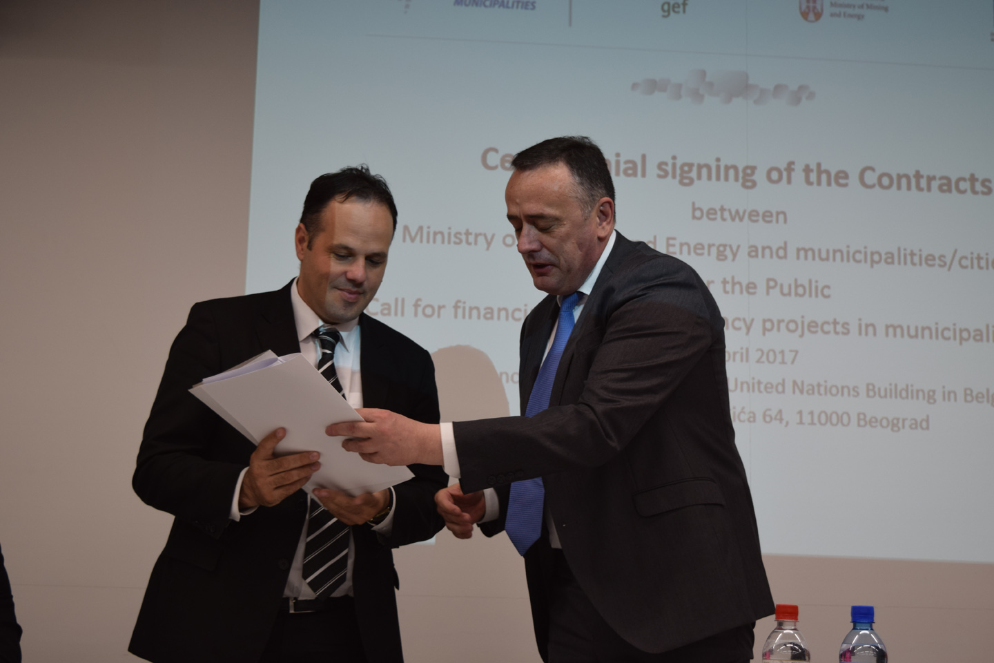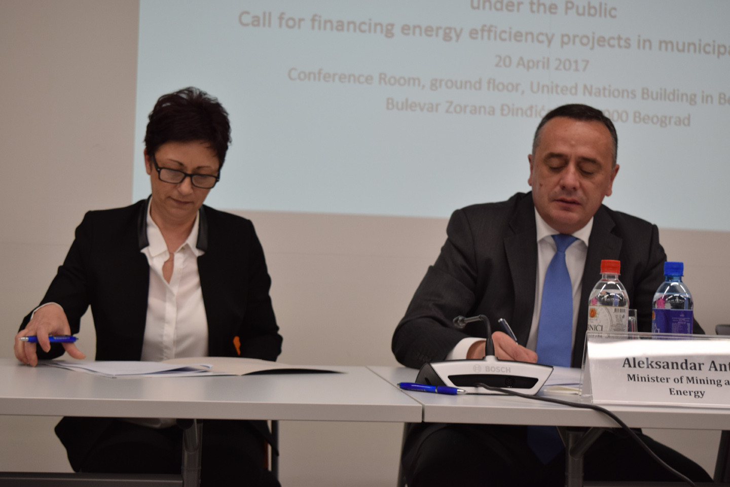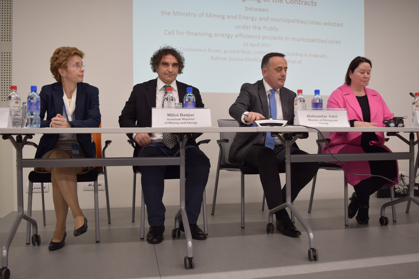 U četvrtak, 20. aprila 2017. godine u prostorijama Programa Ujedinjenih nacija za razvoj, Ministar rudarstva i energetike Aleksandar Antić potpisao je s predstavnicima lokalnih samouprava ugovore o dodeli bespovratnih sredstava za kofinansiranje projekata unapređenja energetske efikasnosti u javnim zgradama u njihovoj nadležnosti.